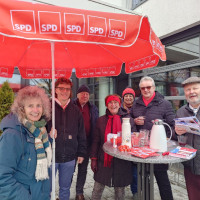 Das schlechte Wetter sorgte dafür, dass es am Bürgerplatz keine politische Konkurrenz gab. Umso größer war das Interesse an den Informations- und Werbematerialien der SPD. Besonders bei den erwachsenen Besucherinnen und Besuchern stieß der Flyer mit der Kandidatenliste der SPD für den Gemeinderat auf großes Interesse und wurde rege nachgefragt.